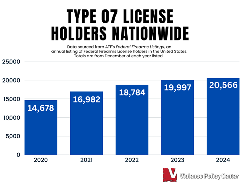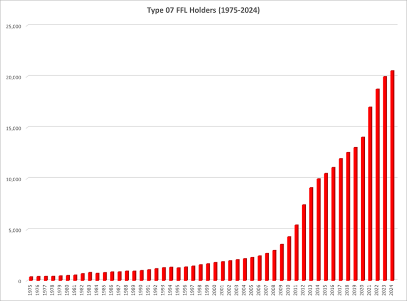 Nationwide, in just the five-year period from 2020 to 2024, the number of Type 07 FFLs increased by 40 percent ─ from 14,678 to 20,566 license holders.8