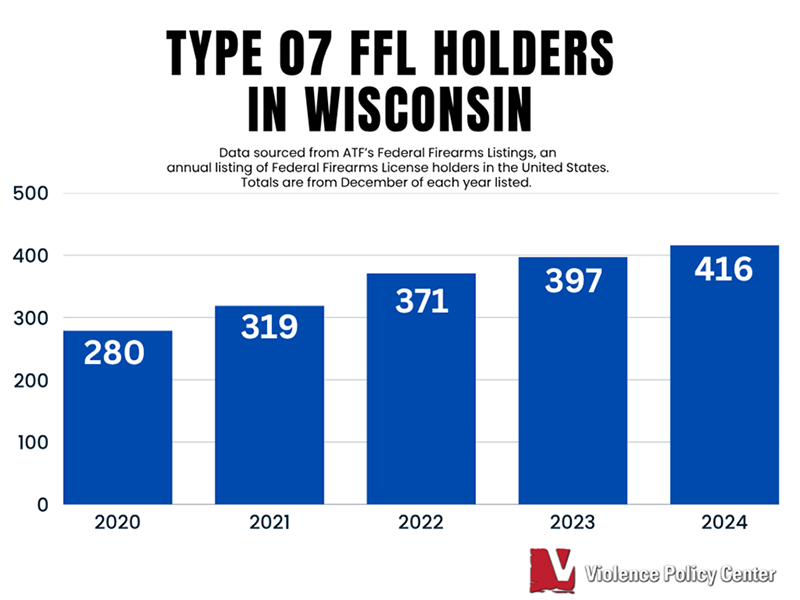 In Wisconsin for this same period, the number of Type 07 FFL holders increased by 49 percent ─ from 280 to 416 license holders.9