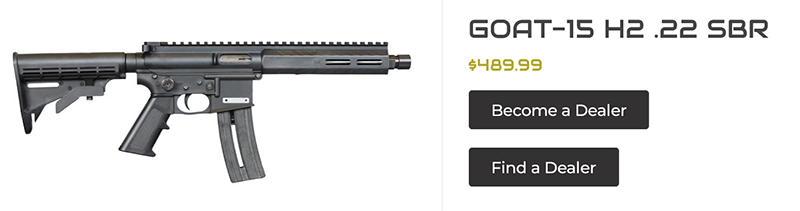 Mountain Billy Gun Lab’s newest iteration is the GOAT-15 H2 SBR, a short-barreled rifle (SBR) version of the GOAT-15. Mountain Billy Gun Lab markets the gun as “Ultra-Lightweight and New Shooter Friendly” claiming, “Whether you’re a new shooter training for the first time or a seasoned enthusiast looking for the ultimate .22 platform, the GOAT-15 H2 blends precision, comfort, and control like nothing else in its class.”